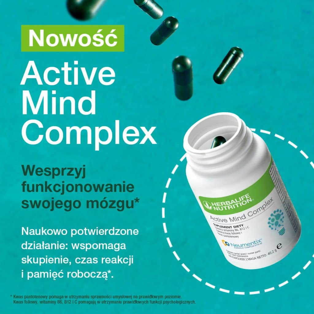 Codziennie dbaj o swoje zdrowie poznawcze* z pomocą Active Mind Complex – suplementu stworzonego z myślą o mądrym odżywianiu dla zdrowia mózgu.