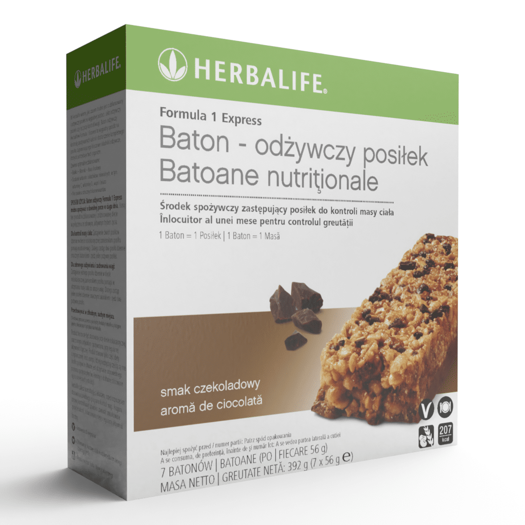 Formuła 1 Express Zdrowy Posiłek, jest zawsze pod ręką, gdy jesteś w biegu. Ciesz się jego smakiem, popijając wodą, abyś już nigdy nie zapomniał o odżywczym posiłku. Chrupiący baton, dostępny we wspaniałym czekoladowym smaku.