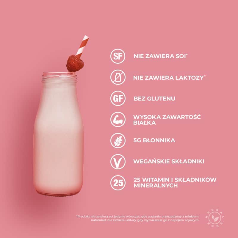 Zmieszaj dwie łyżki stołowe proszku (26 gramów) z 250 ml mleka lub napoju roślinnego